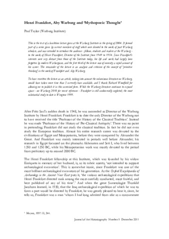 File Format: pdf (Portable Document Format)File Title: Henri Frankfort holds a unique place among the Directors of the Warburg InstitutePage Count: 16File Size: 304216Original Checksum: 68dd1aaf22fa9d8b047eb9cc07fd6c5fMime Type: application/pdf